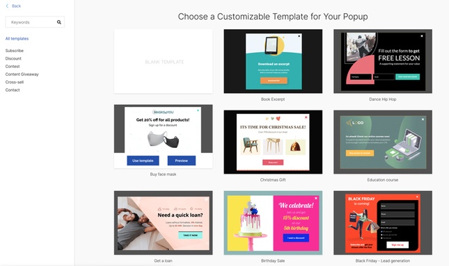 Escolha um template ou crie uma popup do zero, você escolhe.