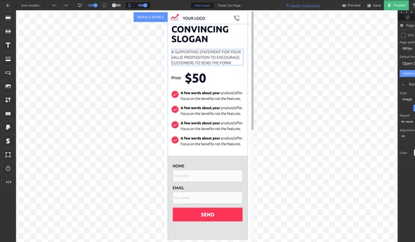 Você pode criar versões de suas landing pages totalmente personalizadas para a versão celular, totalmente diferente da versão desktop e o melhor, sem afetar a outra versão da sua landing page.