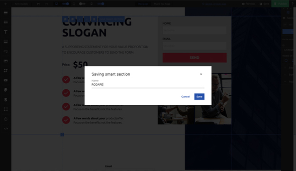 Use este recurso para criar versões de suas landing pages ou sessões iguais em todas as suas landing pages, como rodapé, cabeçalho entre outras