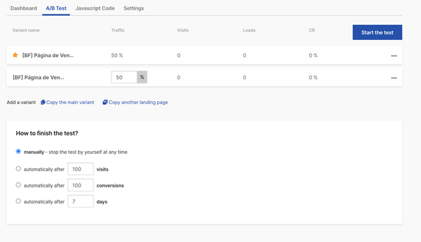 Com os testes A/B você consegue testar o desempenho de várias landing pages e determinar, manualmente ou automaticamente, qual critério para eleger a página vencedora.